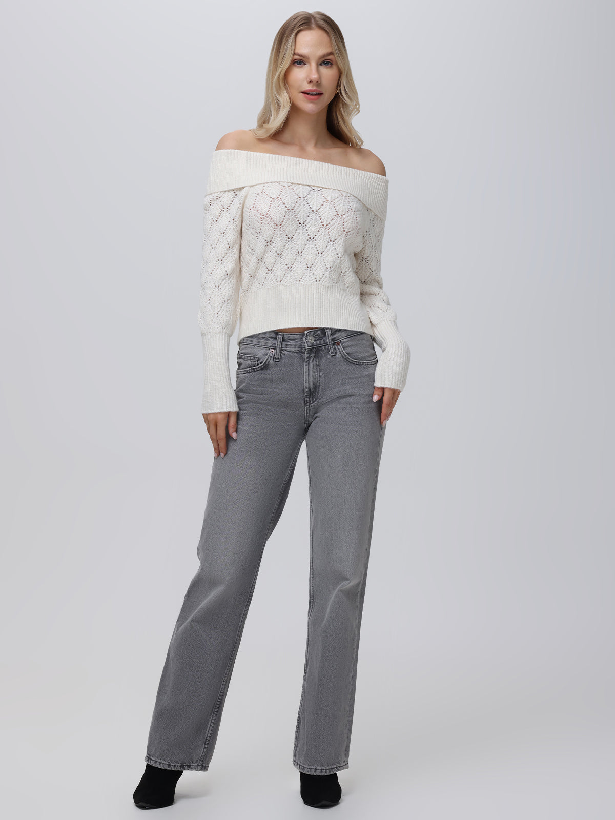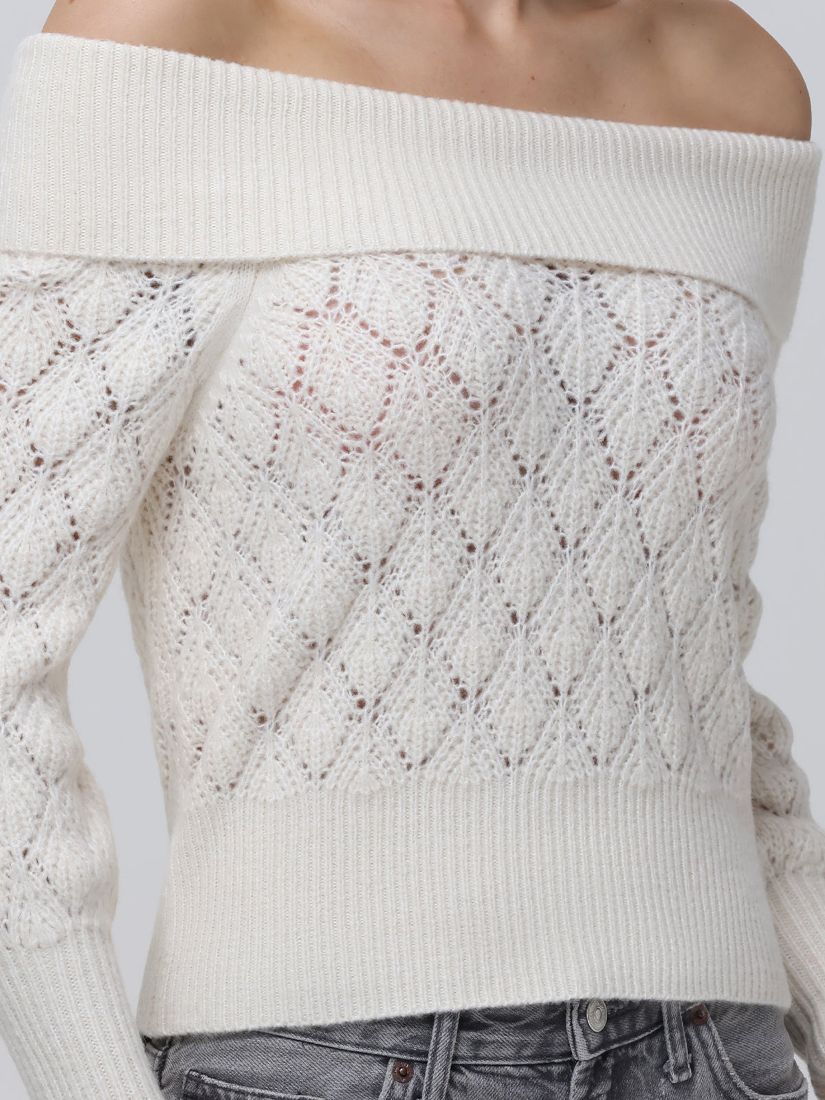 This pullover features an elegant pointelle design that adds a touch of sophistication. The off-the-shoulder style brings a modern, flattering look, while the ribbed cuffs and hem ensure a snug and cozy fit. Ideal for layering or wearing on its own, the Camila pullover is a versatile wardrobe essential for both casual outings and dressier occasions.