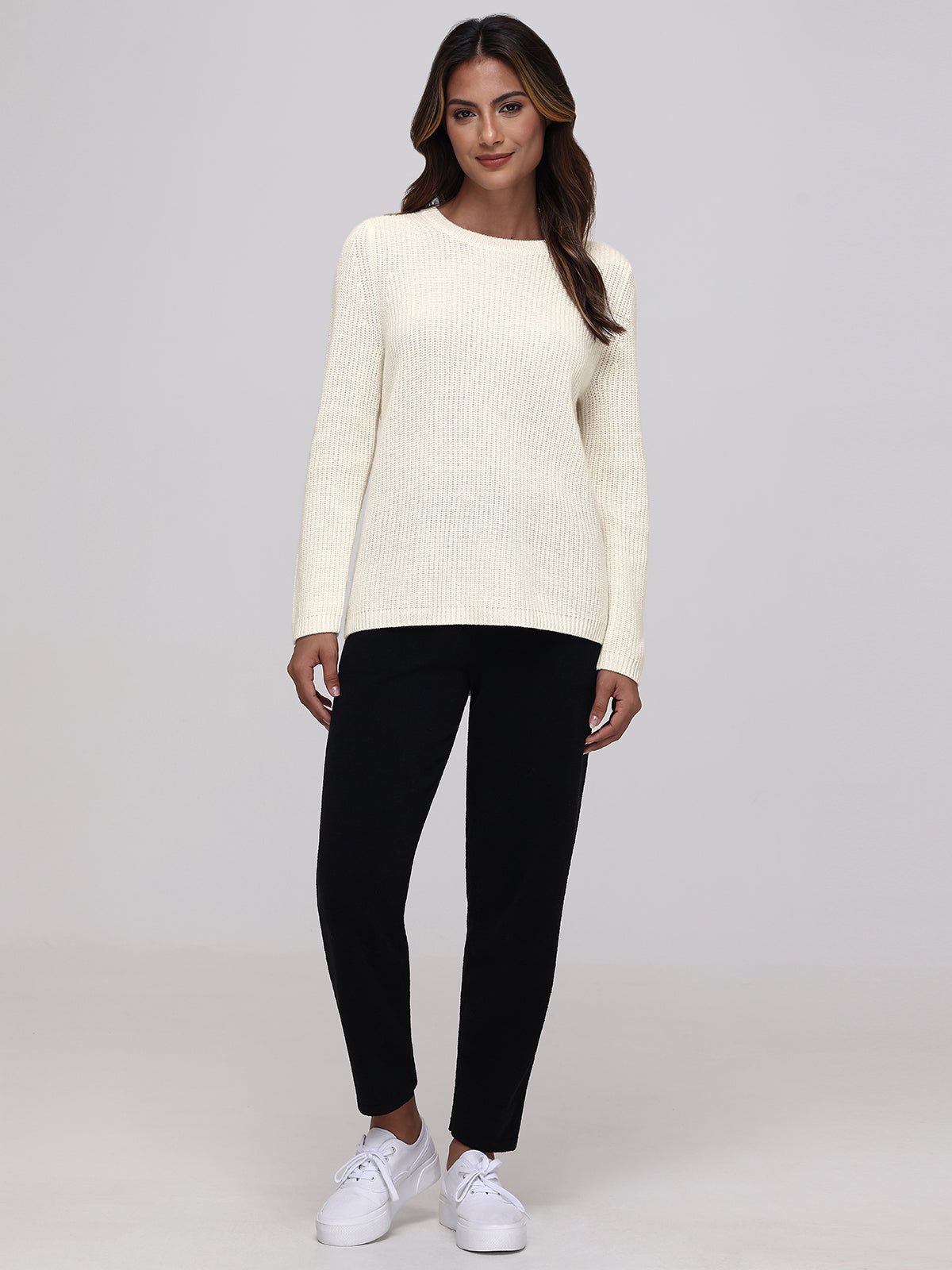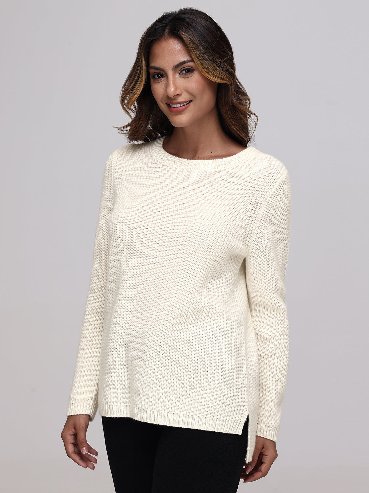 Emma: 100% Cashmere Crewneck Shaker Stitch Sweater