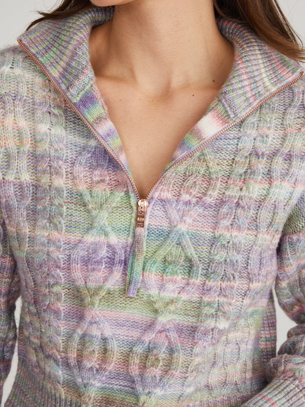 Experience ultimate comfort and style with Jackie: Spacedye Zip Front Pullover. The soft and luxurious spacedye fabric elevates this sweater, while the rose half zip front provide versatility turning it into a mockneck or collared pullover. Finished with rib trim for a polished look. Stay cozy and chic all day long.